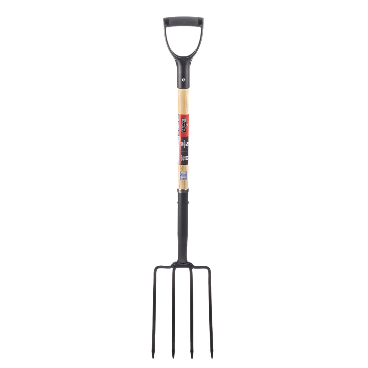 Ideal for breaking up soil, weeding and other landscaping needs, the Black Diamond 4-Tine Digging Fork is a high-quality, heavy-duty gardening tool that is built with durability and efficiency in mind. The fork is equipped with four sturdy steel tines designed to quickly turn over large areas and cut into tough material â from stony ground to clumped soil. Additionally, the fork can be used to prepare flower beds and loosen soil to transport plants with their roots intact â among other jobs. The Black Diamond 4-Tine Digging Fork is a premium tool that is both suitable for a variety of projects and essential for your landscaping needs!