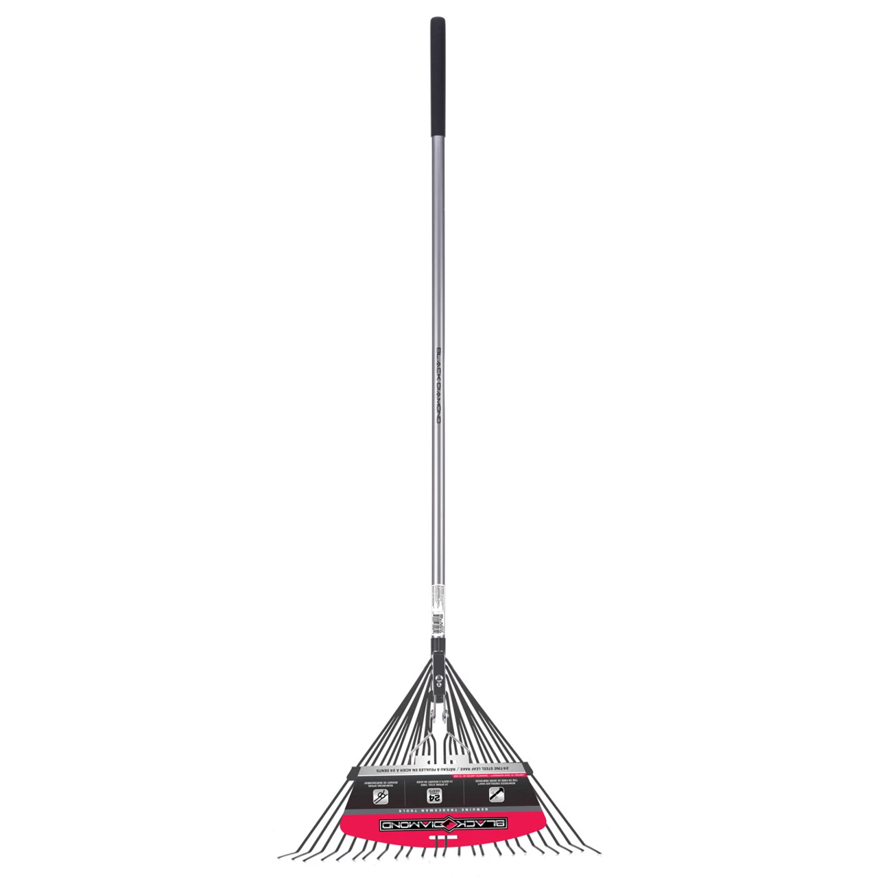 The Black Diamond Leaf Rake features a reinforced, fiberglass shaft for increased strength and durability. The rake utilizes 24 spring steel tines designed to gather large clumps of debris from lawns. The reinforcing spring helps provide a smooth sweeping motion and the 60â length provides comfort and enables gardeners to work while upright. Whether youâre removing leaves, dead grass or pine needles â this rake is tailor-made for the job!