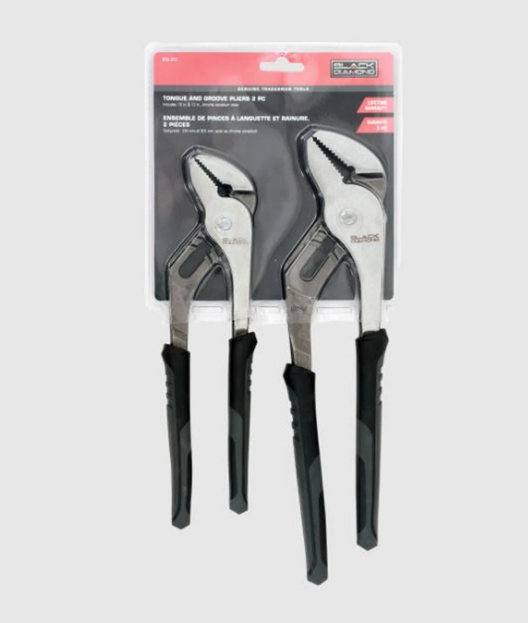 Black Diamond 10″ & 12″ Chrome Vanadium Steel Tongue & Groove Pliers- 2pk
