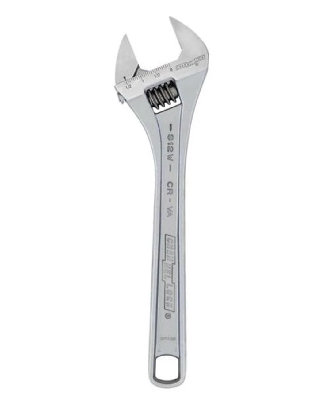 Made of chrome vanadium steel with 4 thread knurl and non-protruding jaws that provide greater capacity; minimal head width improves performance in confined spaces. Measurement scales (in. on front mm. on reverse) are handy for sizing nuts, pipe and tube diameters.