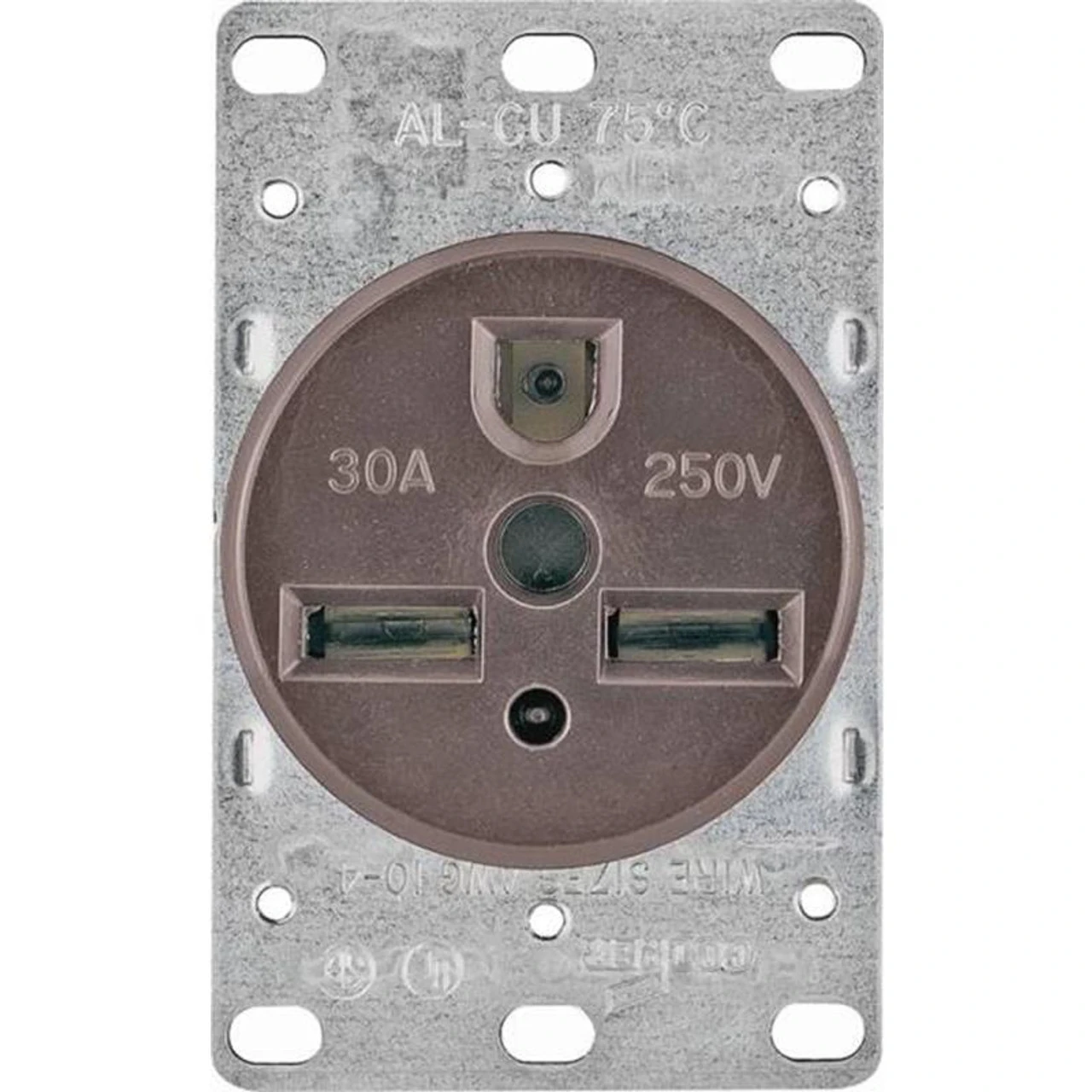 Flush Mount, Range And Dryer. Meets All UL 498 Requirements. For Use With Copper Or Aluminum Wire. 75 Degrees Celsius Rated Terminals. Fits One Or Two Gang Enclosures, Not Included. NEMA 6-30.