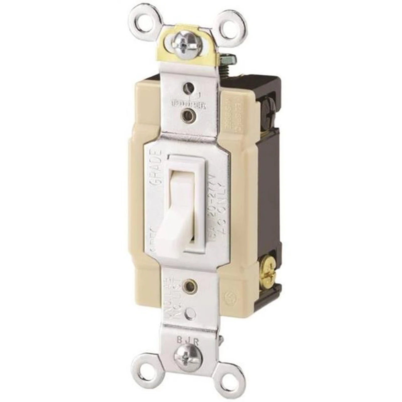 Industrial Design Cam Action Mechanism Insures Quiet Switch Action. 120/277 Volt Rating Ideal For Fluorescent Lighting Fixtures Typical In Commercial Applications. 0.050″ Thick Steel Mounting Strap Zinc-Plated For Corrosion Resistance.