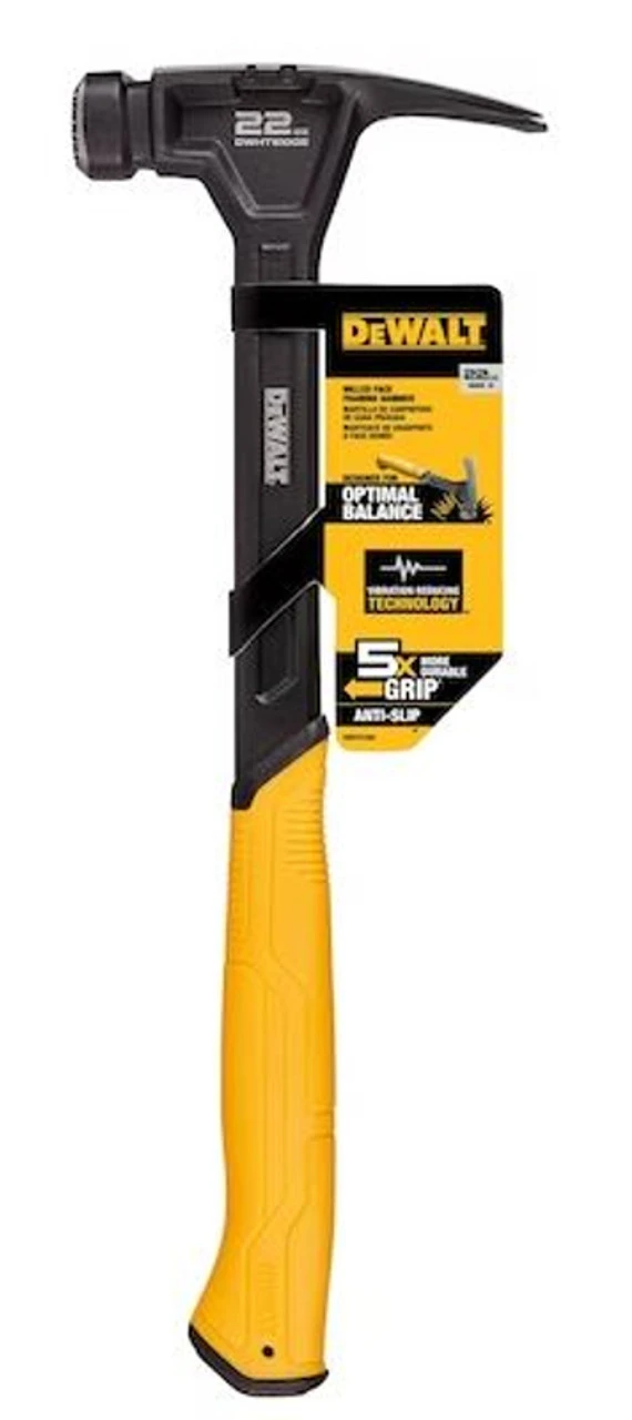 From carpentry to demolition, the multi-use 22 oz. Steel Framing Hammer was constructed to deliver reliable performance for a range of applications. Its balanced design allows for smooth, controlled swings while driving nails and the integrated nail puller helps you rapidly pull finish nails, framing nails, and staples. Regardless of worksite conditions, the tear-resistant handle provides an anti-slip grip and the magnetic nail start offers the advantage of one-handed nail placement for enhanced productivity throughout the workday. SMOOTH SWING with balanced design for enhanced utility 5X MORE DURABLE GRIP* for secure, anti-slip handling in a range of worksite settings SEAMLESS TOE-NAILING: Milled, shield-shaped strike face for finish work BUILT FOR LONG LIFE: Durable, one-piece steel construction and thick, heat-treated steel shaft TRI-PULL TECHNOLOGY FOR VERSATILITY: Remove finish nails, framing nails, and staples ONE-HANDED NAIL PLACEMENT with magnetic nail starter
