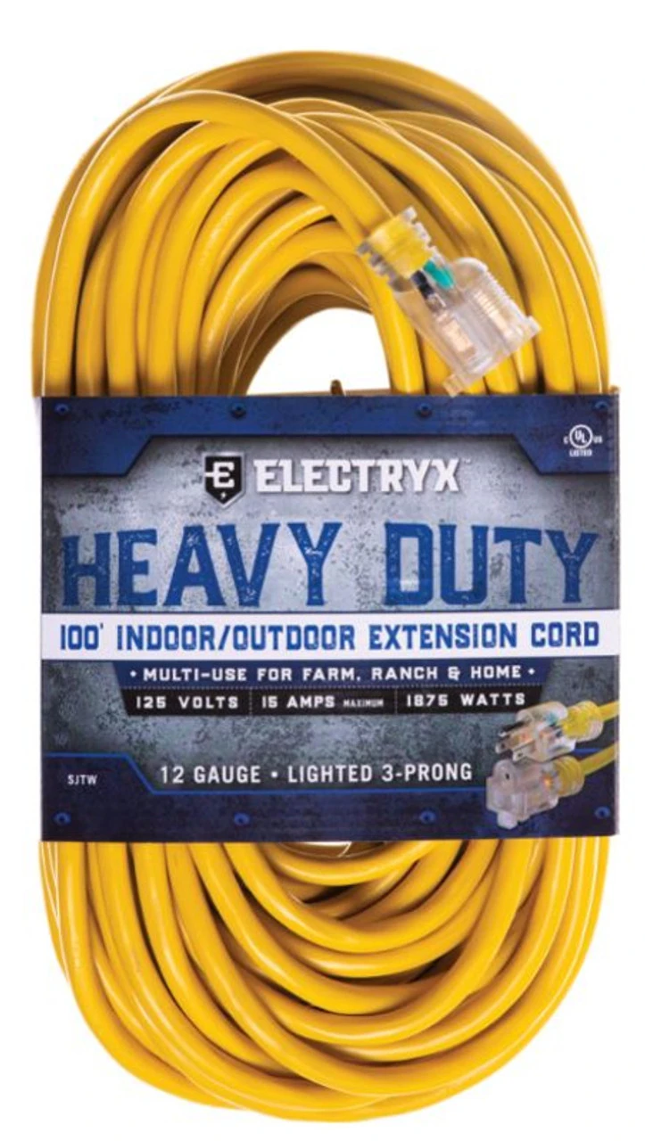 Electryx Heavy Duty Indoor/Outdoor Extension Cord 100 FT Yellow