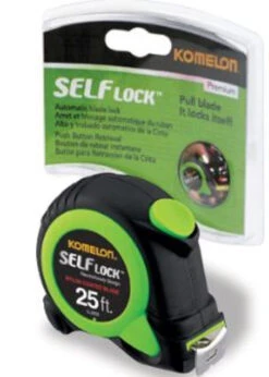 This is it! This is what everyone has been talking about–the Self-lock tape measure. This revolutionary Komelon tape measure functions like they always should have. With Komelon’s Self-Lock tape measures, all you have to do is pull the blade out, let it go, and the blade stays out! To safely retract the blade, press the top button and control the speed of return. “These are the absolute EASIEST tape measures I’ve ever used” said Russ on Amazon.com, “I have every size.” This 25′ Self-Lock has a nylon coated blade and its case is ergonomically designed for user comfort. Be careful! Once you try the Self-Lock you may never use another.