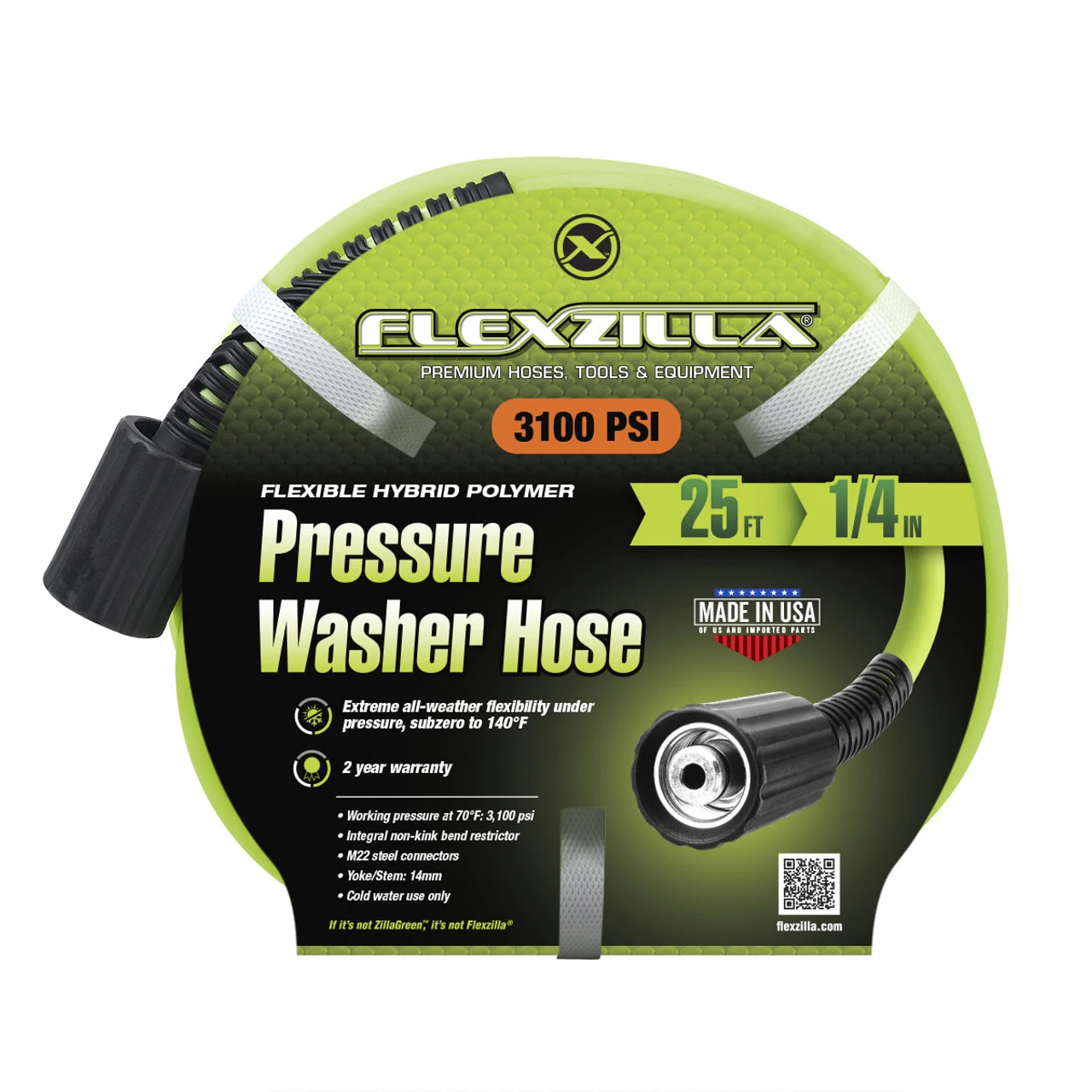 Legacy Mfg – Flexzilla 1/4inX25′ Pressure Washer Hose With M22 Fittings