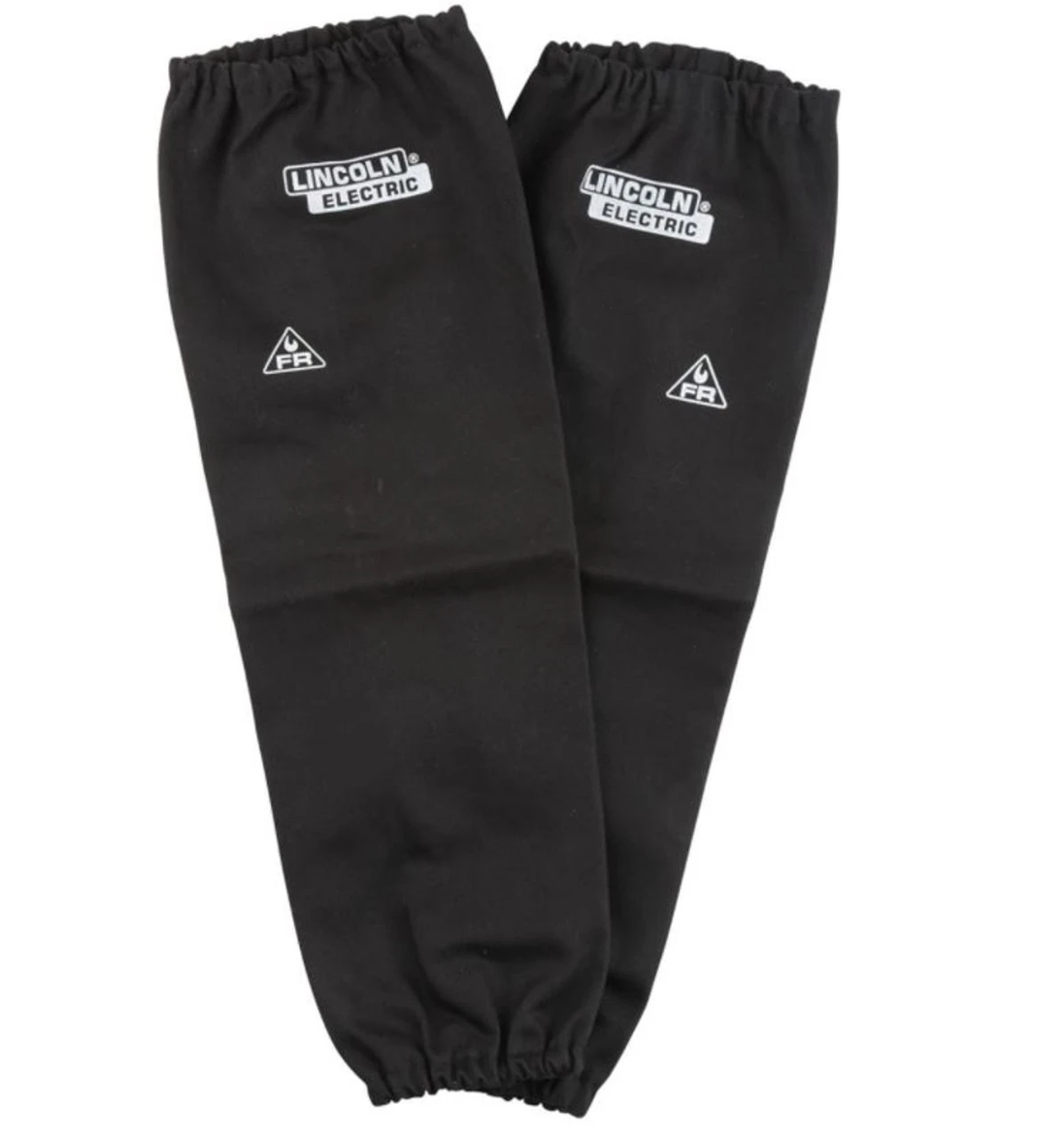Slip on these fire resistant Lincoln Electric black welding sleeves to keep you cool and protected while welding. The 9 oz., 100% flame retardant material provides spatter and heat resistance, while the split leather panels provide durable protection in high wear areas.