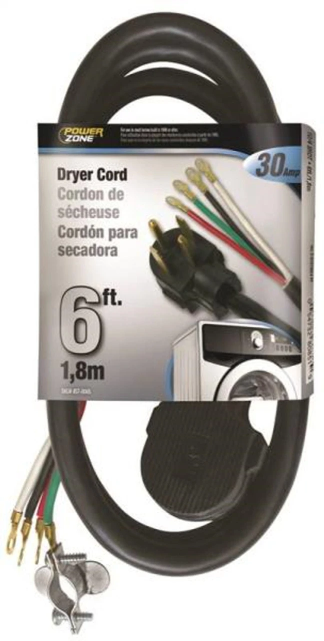 Powerzone 6 Ft Dryer Cord – Black
