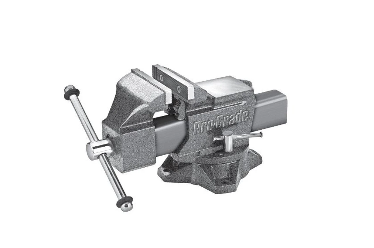The Pro-Grade 4 in. heavy-duty mechanic’s bench vise features 30,000-PSI castings. It features a durable powder coat finish. It makes the perfect vise for Professionals and DIYers.